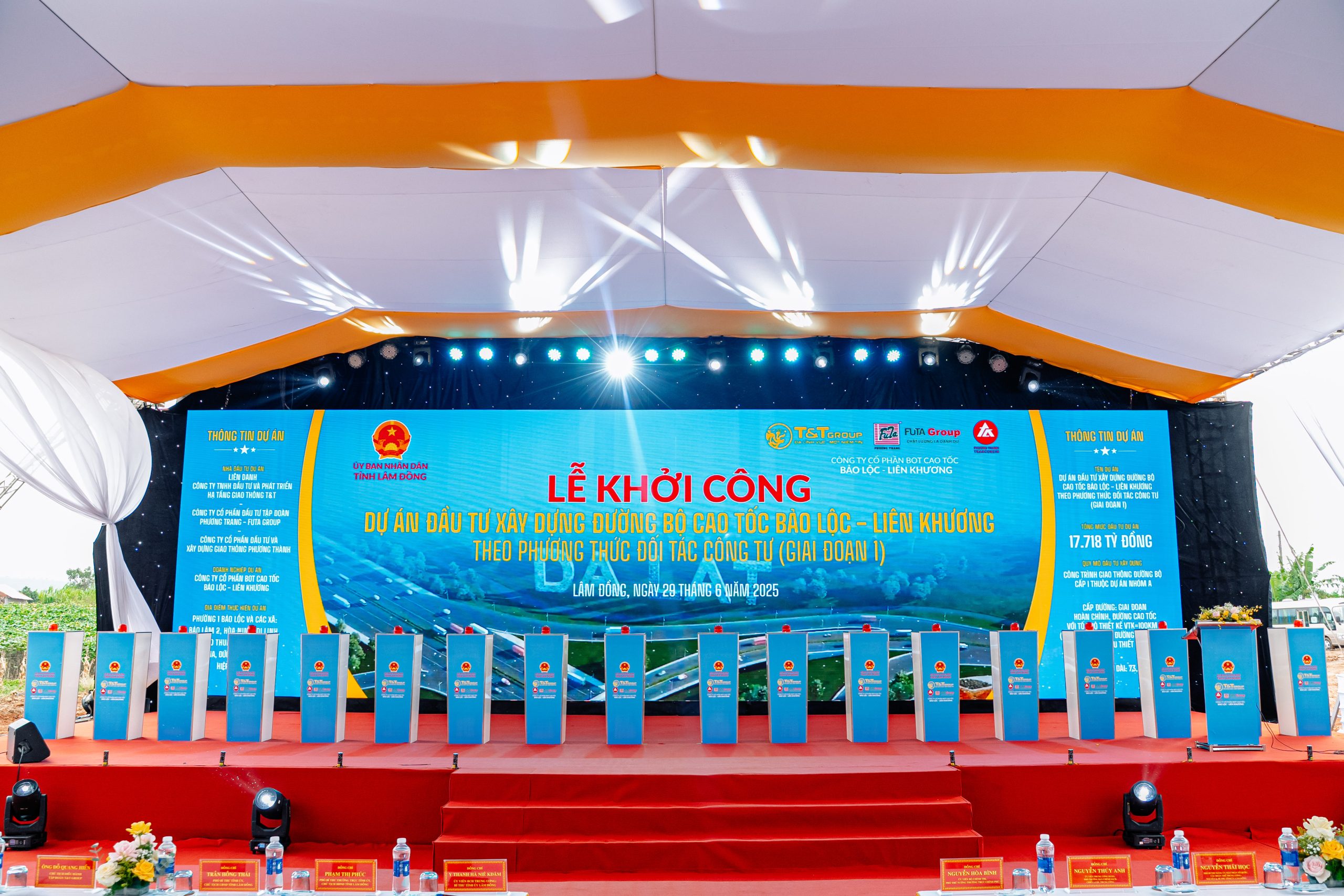 Sáng ngày 29/6/2025, tại nút giao với Quốc lộ 27 (Km192), xã N’Thol Hạ, huyện Đức Trọng, tỉnh Lâm Đồng, Lễ khởi công Dự án đầu tư xây dựng đường bộ cao tốc Bảo Lộc...